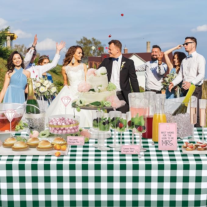 - Easy to Clean: The surface of the green checkered tablecloth has a good waterproof and oil-proof effect, which can effectively prevent food and beverage spills from making the table dirty, easy to clean, just pack up and throw away after the party