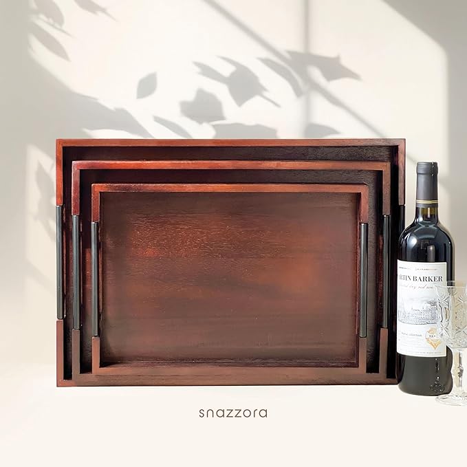 - Premium Acacia Wood Serving Trays Crafted from durable acacia wood with rich, natural grain. A perfect wooden tray set for daily use or farmhouse-style home decor.
