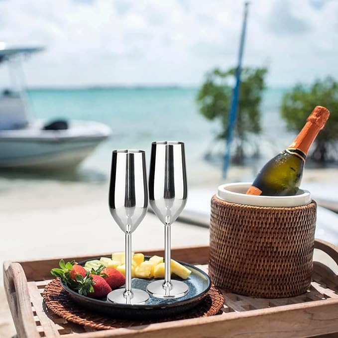 - 【Champagne Set】The metal champagne flutes offer a variety of colors like gold, silver, and rose, you can pick up a set of unbreakable champagne flutes as Anniversary Gifts. Perfect for celebrating the holidays with all your best friends! Also makes a great holiday gift for your loved ones!