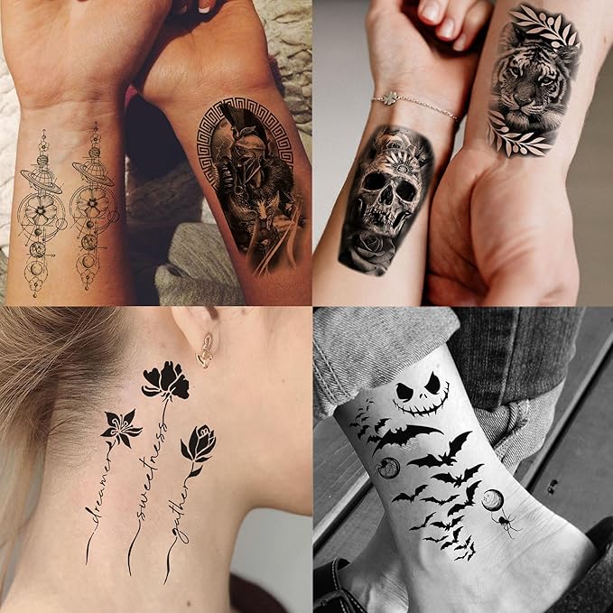 - đăFake Tattoos That Look Real And Last LongăPackage Include 12 Sheets Half Arm Sleeve Temporary Tattoos For Adults and 62 Sheets Tiny Cute Small Temporary Tattoos For Kids Girls Boys Teens. You Can Stick Temporary Tattoos For Women Face, Body Art, Cheek, Waist, Wrist, Arm Tattos, Shank, Hand, Foot, Ankle, Forehead, Head, Finger, Ear, Temp Tattoos Neck, Shoulder, Shank, Forearm, Chola, Cholo, Boobs, Fake Tattoos Jewelry, Underboob, Back, Chest, Legs, Clavicle Tattos, Temporal Tattoos Sets Kits.
