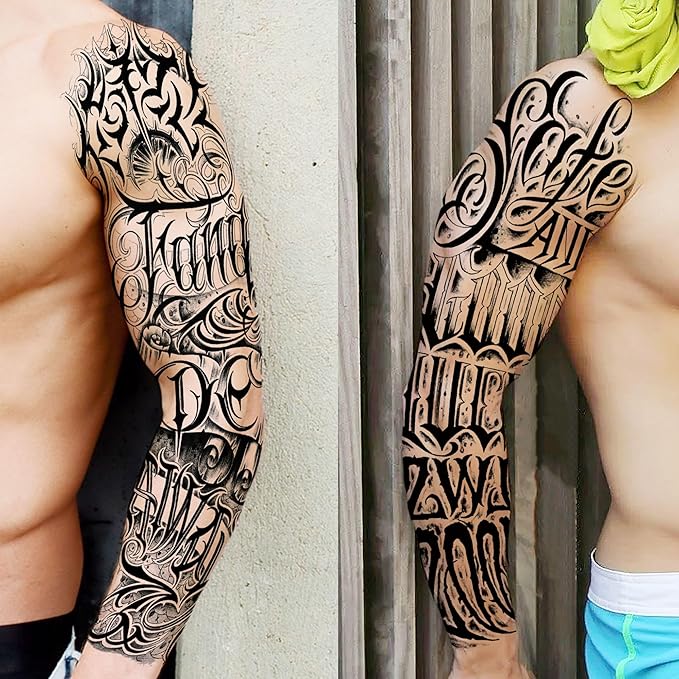 - 💗【Fake Tattoos That Look Real And Last Long】Package Include 8 Sheets Big Super Large Full Arm Sleeve Tattoos For Men and 12 Sheets Half Arm Sleeve Temporary Tattoos For Adults. You Can Stick Temporary Tattoos For Women Face, Body Art, Cheek, Waist, Wrist, Arm Tattos, Shank, Hand, Foot, Ankle, Forehead, Head, Finger, Ear, Temp Tattoos Neck, Shoulder, Shank, Forearm, Cholo, Chola, Boobs, Fake Tattoos Jewelry, Underboob, Back, Chest, Legs, Clavicle Tattos, Temporal Tattoos Sets Kits.