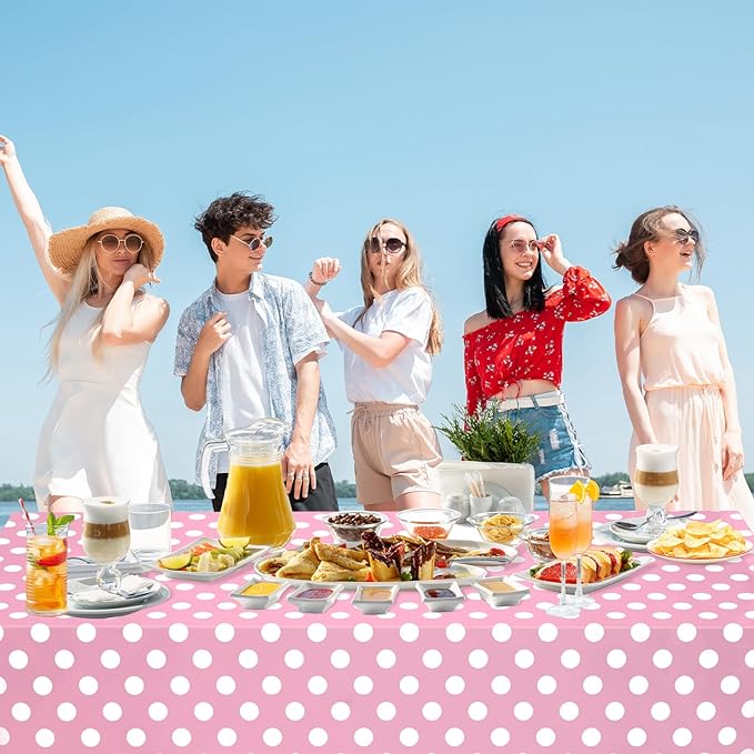 - Easy to Clean: The surface of the pink polka dot tablecloth has a good waterproof and oil-proof effect, which can effectively prevent food and beverage spills from making the table dirty, easy to clean, just pack up and throw away after the party