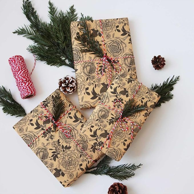 - Elegant Design: This brown wrapping paper showcases a charming retro black floral pattern set against a warm brown background, ensuring your gifts stand out with elegance and charm