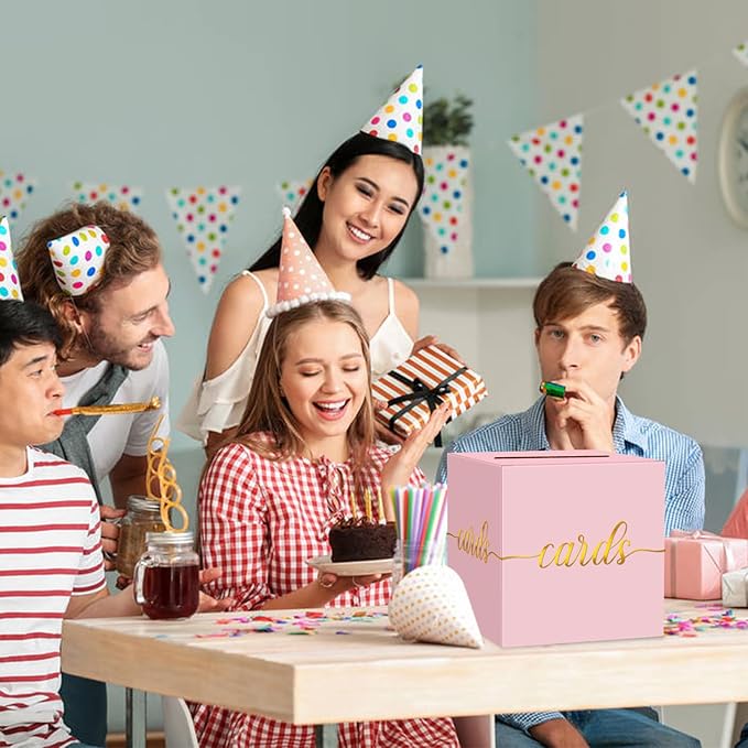 - 【Exquisite Design】The light pink card box is printed with elegant gold foil "card" characters, so that your friends can see its function at a glance. The party card box is suitable for any scenario. The exquisite design can also be the icing on the cake for your party. Let the light pink card box add more splendor to your graduation or birthday party and more!