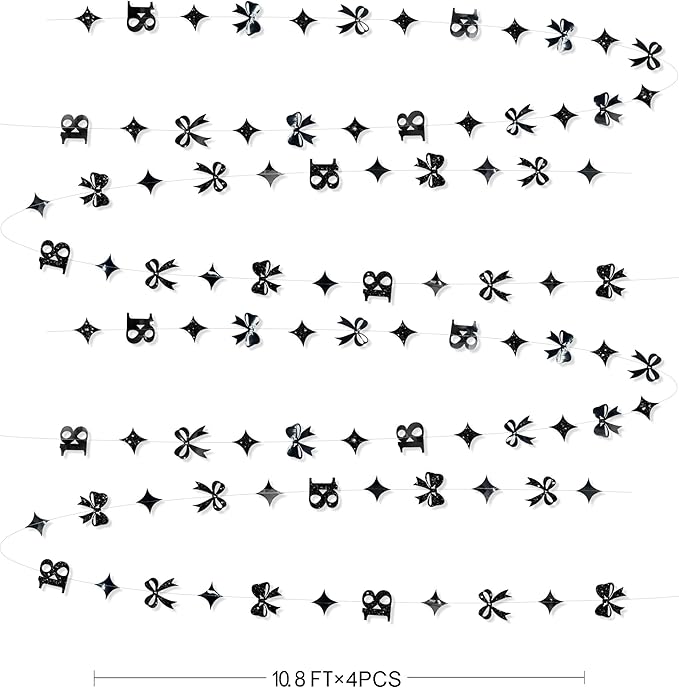 - 👍 Package includes - 4 strings of 10.8 feet/3.3 meters black number 18 and conquette bow with sparkling twinkle star and circle dots garlands , totally is 43.2 feet/13.2 meters