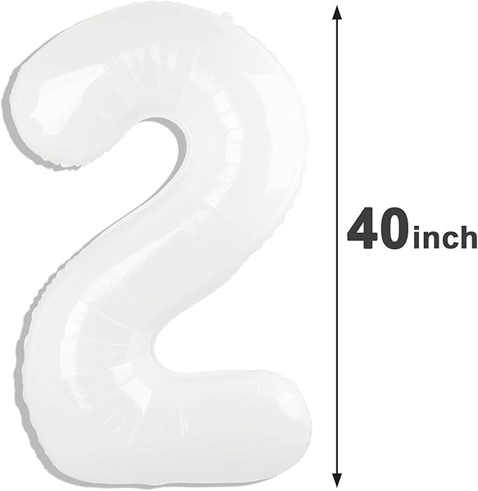 - 1.Make Party Charming with White Number Balloon:You will receive an uninflated 40 inch number 2 balloon. Balloons are always the best statement of romance and surprise. Big balloons symbolize vitality exoticism, adding glamour to 2nd birthday parties. Bright metallic white and huge size make 2 balloon number a highlight of special parties.Choose one or more white numbers from 0-9 balloon,and use 2 2nd 12 22 32 42 52 62 72 82 92 balloons bulk to create a lively and charming birthday party!