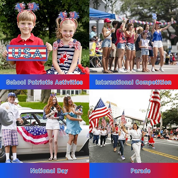 - PROPER SIZE HEADBAND:The USA flag headband is made with soft, stretchy material that feels comfortable against the skin. It’s designed to fit most head sizes without feeling tight or causing discomfort. It’s perfect for long wear during 4th of July fun!