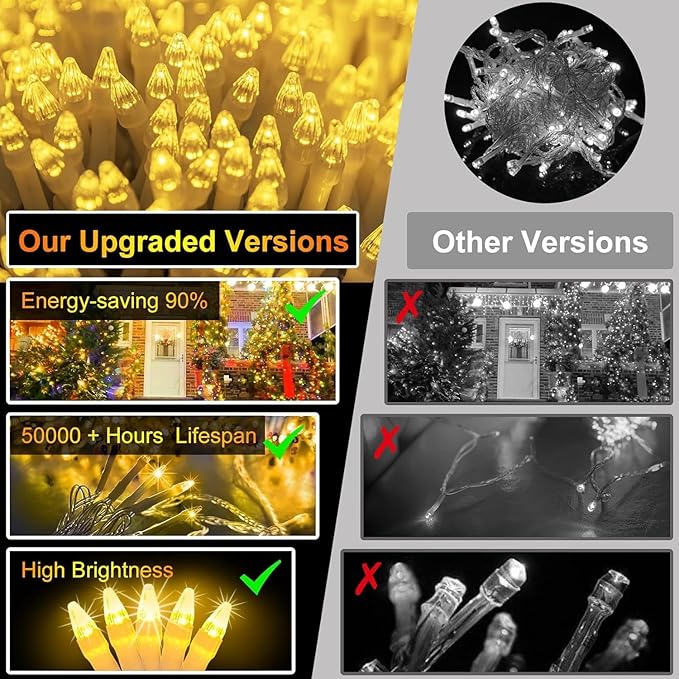 - Upgrade your holiday display with our super-long 470 ft Christmas lights featuring 1500 brilliant LEDs. Our advanced version of LED beads ensures each light is both dazzling and durable—perfect for creating a captivating outdoor winter wonderland that enchants visitors of all ages.