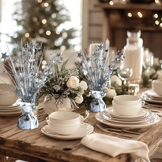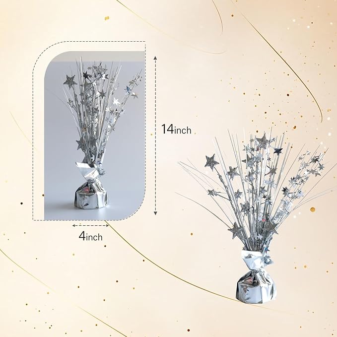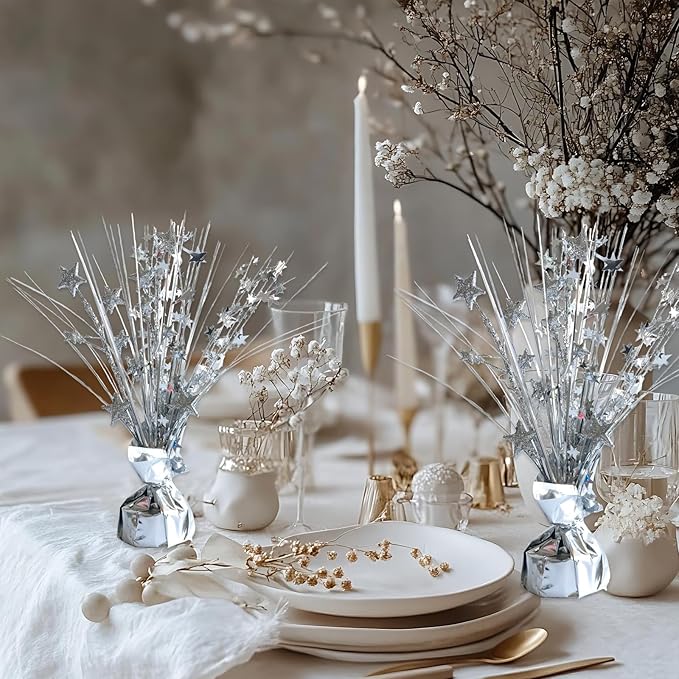 - [Metallic Sliver Foil Star Party Decoration] The package will arrive with 12 pieces metallic shining stars brust table centerpieces, this party table decor set is really good for decorating your planned party holiday, especially birthday, wedding, anniversary etc. And the quantity of the set is enough for give you a whole decoration.