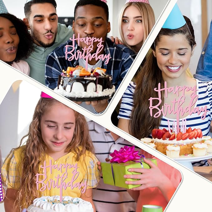 - Versatile Use: This pink cake decorations can be used to decorate cheesecakes, ice cream towers, or even wedding dessert tables. The eye-catching “Happy Birthday” lettering can also be used as a chic photo backdrop.