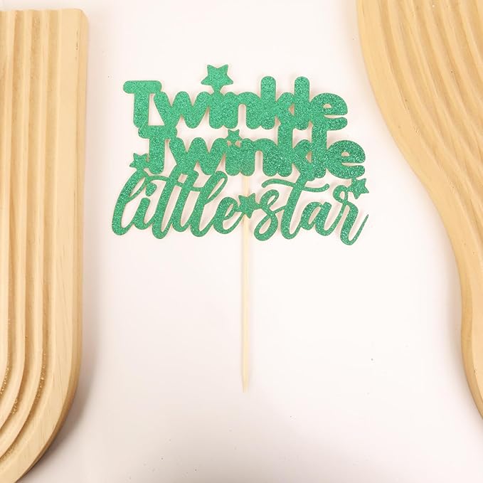 Twinkle Twinkle Little Star Cake Topper - Glitter Green Baby Shower Party Cake Decoration, Perfect for Gender Reveal Party, 1st birthday Party or Photo Booth Props (Green)
