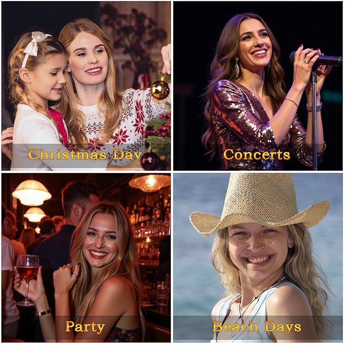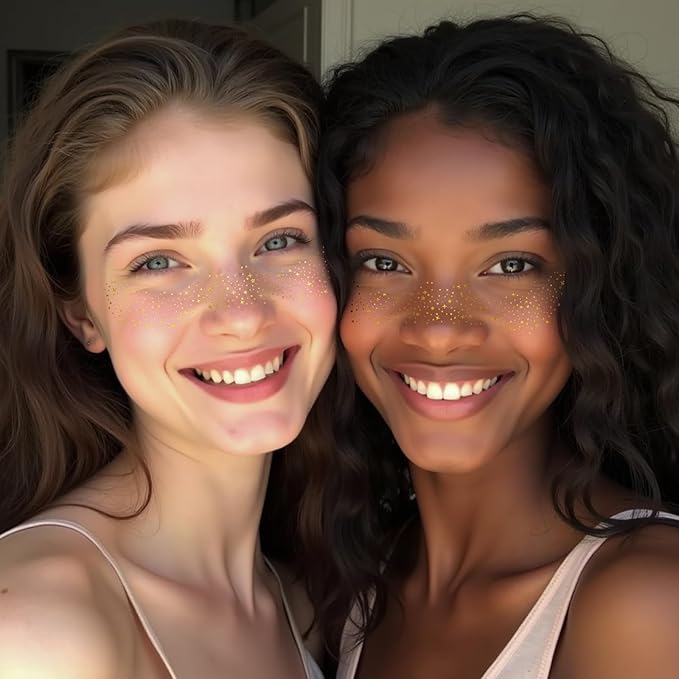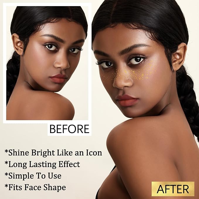 6PCS Glod Glitter Freckles Tattoo, Gold Freckles Temporary Face Tattoos, Gold Star Freckle, Body Face Glitter for Women Girls, Waterproof Long-Lasting Party, Festival, Concert Makeup Accessories