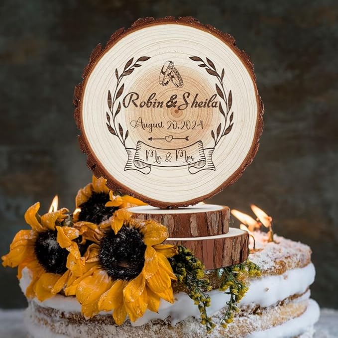 - HANDCRAFTED QUALITY: Each cake topper is handmade in a small studio using precision laser engraving on carefully selected natural wood slices. Every piece features unique wood grain patterns and textures, making each cake topper one-of-a-kind