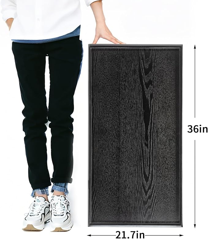 36 x 22 Inches Extra Large Solid Wood Serving Tray for Tea Coffee Table Snack Food Meals Serving Plate Kitchen Party Bar Breakfast Server with Raised Edges Black Wooden Decorative Ottoman Tray