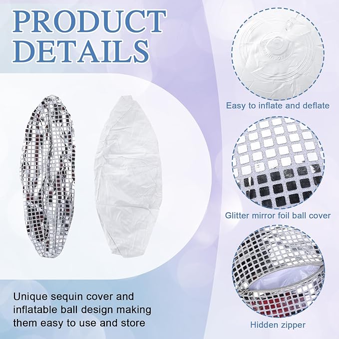 - Space Saving and Convenient: our disco ornaments adopt an attractive sequin cover and inflatable ball design with side zipped ball covers, making them easy to use and store, making it convenient to keep and save space when not in use