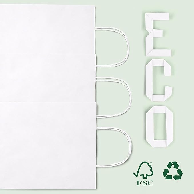 - Eco-friendly Gift Bags :These kraft paper bags are made of Recycled Paper. FSC compliant.This small paper bag is healthier and more upscale than plastic bags.Paper bag size: 10 inches long,5 inches wide, 13 inches high.