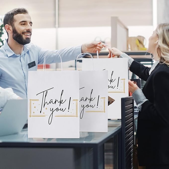 - STRONG AND DURABLE - These kraft paper gift bags have a flat square bottom and can stand up easily. Each bag is several mil thick and will not tear or rip easily. The reinforced bottom also provides extra support while you shop or carry items, ensuring that the contents will stay safe not fall through, unlike other flimsy bags. The strong braided handles give an upscale feel while making it easy to carry.