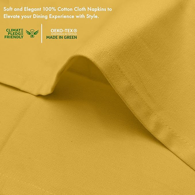 Ruvanti Premium Cloth Napkins Set of 12, 18x18 Inches, 100% Cotton, Washable, Soft & Absorbent, Perfect for Wedding, Christmas, Thanksgiving Dinners -Spicy Mustard
