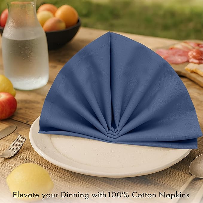 Ruvanti Premium Cloth Napkins Set of 6, 18x18 Inches, 100% Cotton, Washable, Soft & Absorbent, Perfect for Wedding, Christmas, Thanksgiving Dinners - Bijou Blue