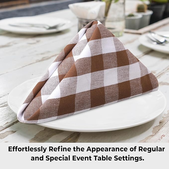 Urban Villa Cloth Napkins 100% Cotton Dinner Napkins Highly Absorbent 20x20 Inches (Set of 12) Brown White Buffalo Checks Reusable Washable Soft Durable Premium Napkins Ideal for Home Wedding Parties