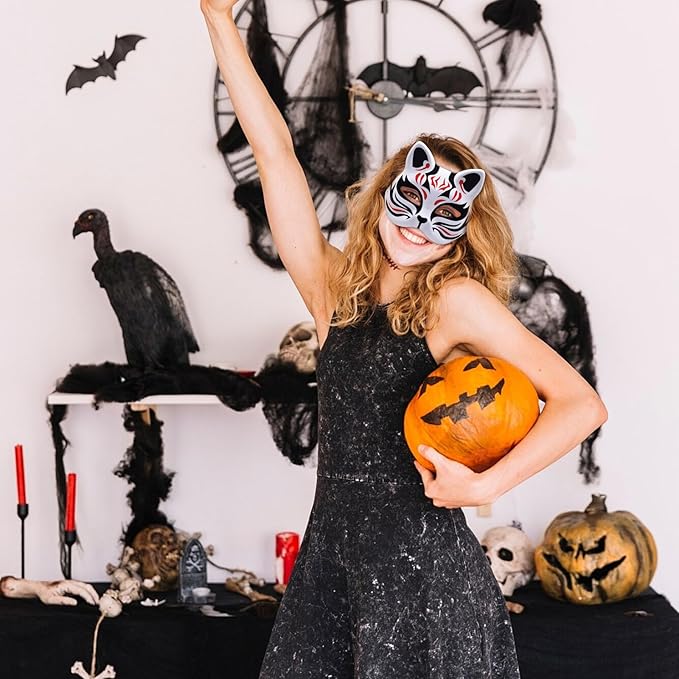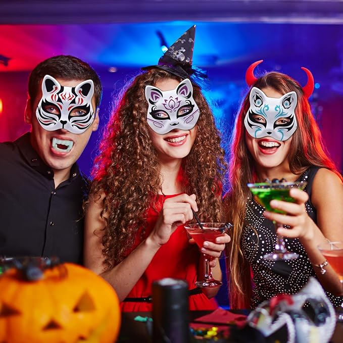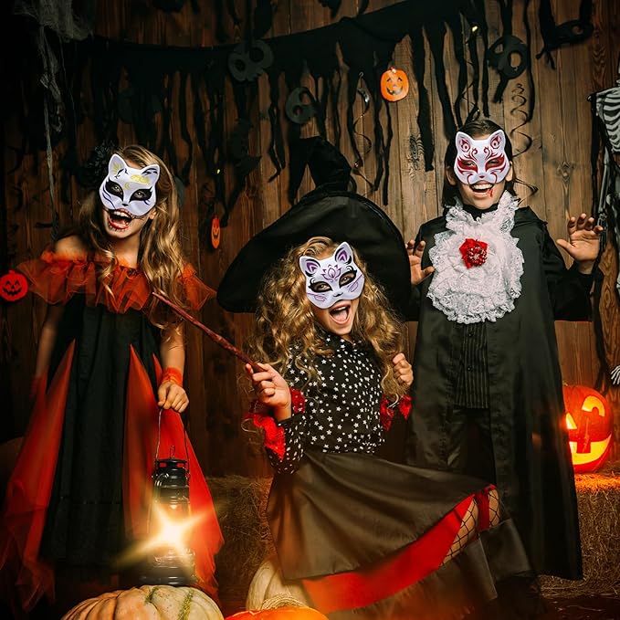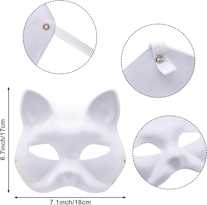 - 12 Fox Masks Bulk Set – Includes 12 blank white fox masks designed for costume events, painting sessions, and group crafts. Ideal for cosplay fans, theater performers, and artistic gatherings.
