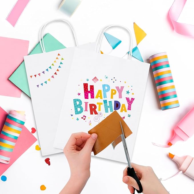 - STRONG AND DURABLE - These kraft paper gift bags have a flat square bottom and can stand up easily. Each bag is several mil thick and will not tear or rip easily. The reinforced bottom also provides extra support while you shop or carry items, ensuring that the contents will stay safe not fall through, unlike other flimsy bags. The strong braided handles give an upscale feel while making it easy to carry.