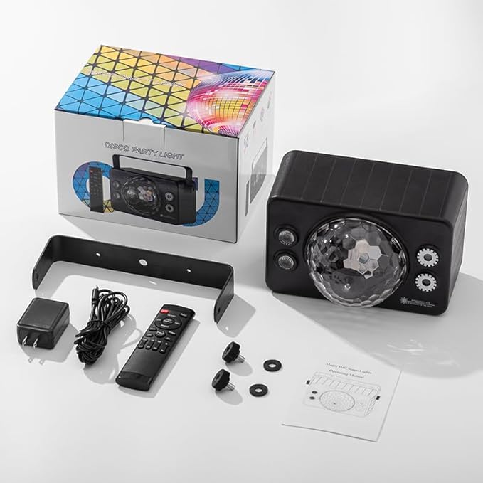 - 【6-in-1 Dynamic Light Show】Command the party with a large 6-color RGB disco ball, intense red and green laser pattern lights, a vibrant 6-color background lamp, and a mysterious UV blacklight. This complete system creates a stunning strobe stage effect, perfect for parties, clubs, and KTV.