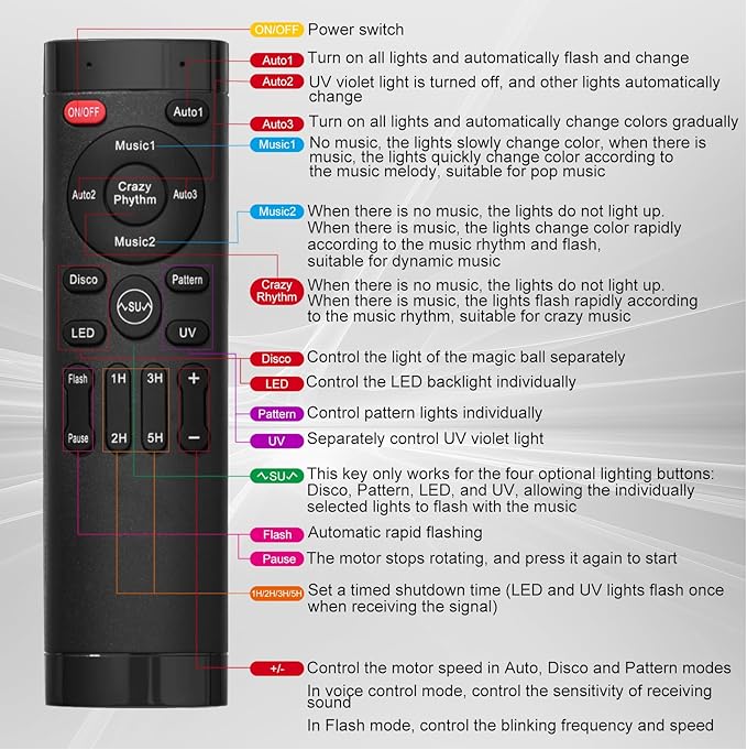 - 【Fully Customizable Your Show, Your Rules:】Go beyond presets! Independently adjust the disco ball spin speed, activated strobe flash frequency, and microphone sensitivity. Uniquely control which components (like the ball light or lasers) respond to sound, giving you a personalized disco light experience.