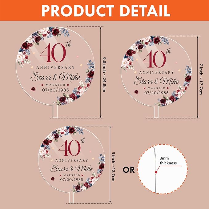 Personalized 40th Wedding Anniversary Acrylic Cake Topper, 40 th Anniversary Decorations, 40th Wedding Decor, 40 Wedding AnniversaryDecor