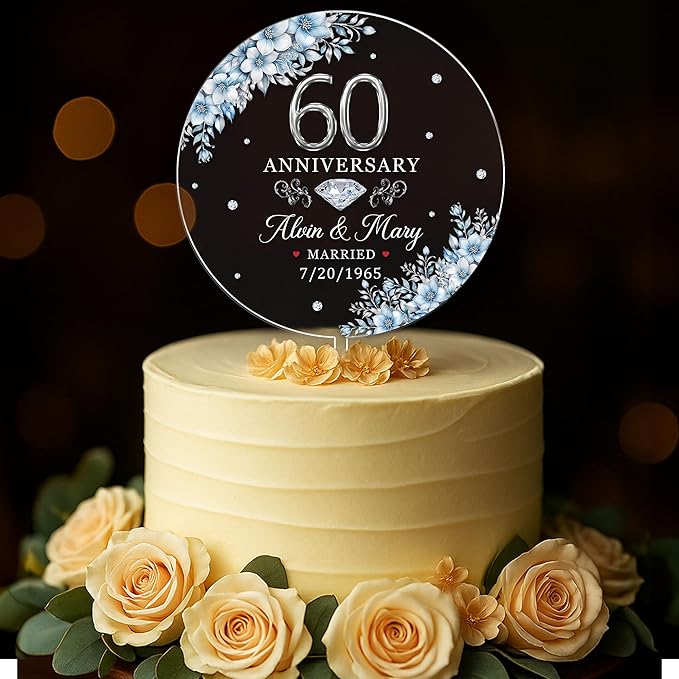 Personalized 60th Wedding Anniversary Acrylic Cake Toppers, 60 th Anniversary Decorations, 60th Wedding Anniversary Decor