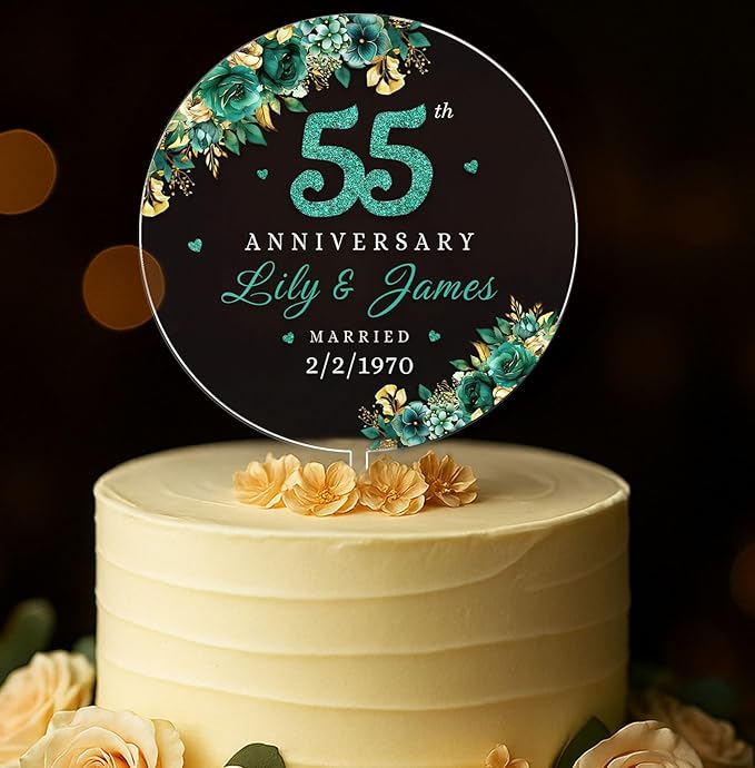 Personalized 55th Anniversary Acrylic Cake Topper, 55 th Anniversary Decorations, 55 Wedding Decor