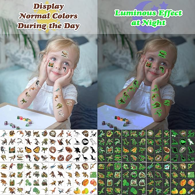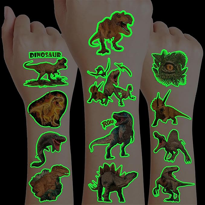 - Creative and Fun: This Luminous Glow in the dark Realistic Dinosaur 3D Jungle Forest Pre-Cut temporary tattoos set includes a variety of playful and cute designs, encouraging your child's imagination and creativity. Bring nonstop joy to the whole birthday or party. Make your kids receive full of expectation and exploration in every festival.