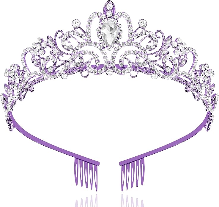 - ♕[Side-Comb Design] The both sides of princess tiaras for girls are designed with comb. Holds the queen crown well on your head. No more worries about your purple crown falling off on the move. The lightweight structure and adjustable comb provide a fit and gentle grip. Make you pretty without any discomfort.