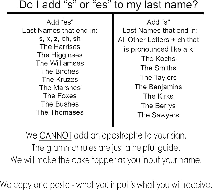 - Plural Last Names: See Grammar photo for adding "S" to your last name. See our grammar photo for help on how to make last names plural.