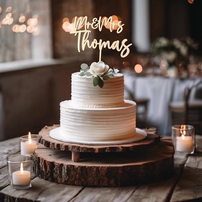 Personalized Wedding Cake Topper, Custom Name Bride and Groom Decoration, Traditional Wedding, Anniversary, Briday Shower Decor (Mr & Mrs)