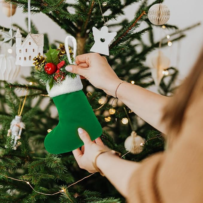 - 2.Perfectly Size: Measuring 7 inches, these mini stockings are ideal for hanging on Christmas trees, fireplaces, and more, making your house look extra cozy and cheerful during the holiday season.The capacity is large enough to hold Christmas gifts, candy,small toys, snacks,gadgets and so on, use them to wrap gifts for children ,friends or family is a great choice, they are gonna love it