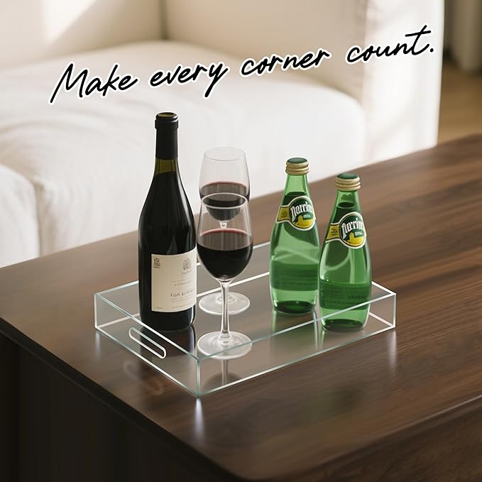 - ✅ Elegant & Modern Design Crafted from premium acrylic with smooth edges, this modern serving tray adds a sleek accent to any space—perfect for a contemporary home or office.