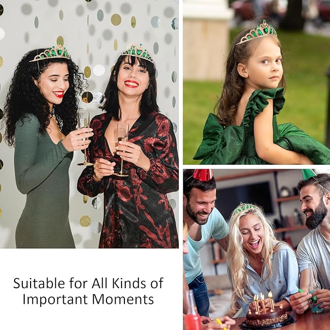 - Eye - Catching Design:Adorned with a large green heart crystal at the center, surrounded by shimmering green and clear rhinestones, this tiara boasts a dazzling and elegant look. It instantly makes you feel like a princesses, perfect for standing out at any special event
