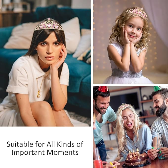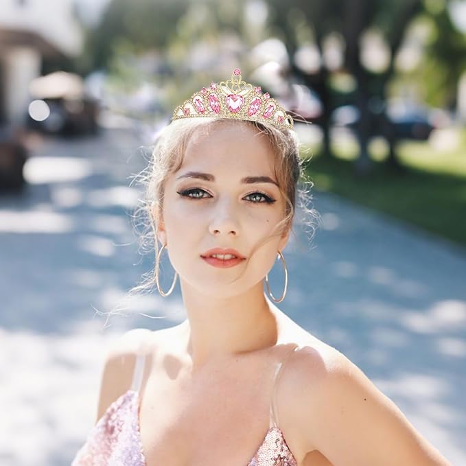 - Eye - Catching Design:Adorned with a large heart crystal at the center, surrounded by shimmering pink and clear rhinestones, this tiara boasts a dazzling and elegant look. It instantly makes you feel like a princesses, perfect for standing out at any special event