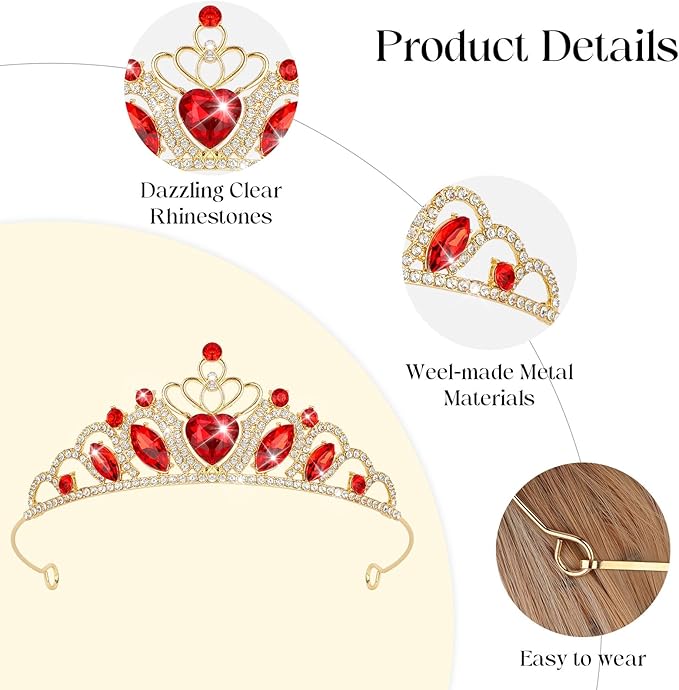 - Eye - Catching Design:Adorned with a large red heart crystal at the center, surrounded by shimmering red and clear rhinestones, this tiara boasts a dazzling and elegant look. It instantly makes you feel like a princesses, perfect for standing out at any special event