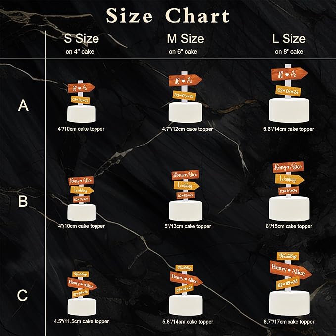- Size options & Design options : The cake topper is available in 3 sizes and 3 designs. Please choose the best one to fit your cake.