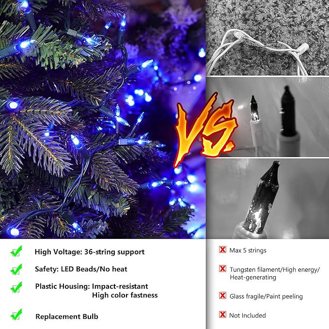 - Energy-Saving LED Christmas Lights: These brilliant LED bulbs deliver vibrant brightness while saving up to 80% energy compared to incandescent lights. The 21.5FT string (with a 19.5FT lighted length and 2.36-inch bulb spacing) comes complete with 4 spare bulbs and 2 fuses for a reliable, long-lasting festive ambiance.