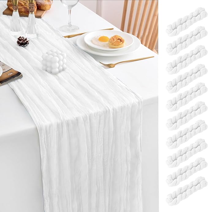 10 Pack White Table Runner 120 Inch Cheesecloth Table Runner 10FT Rustic Boho Gauze Table Runner Long Cheese Cloth Table Runner Semi Sheer Runners for Wedding Bridal Baby Shower Party