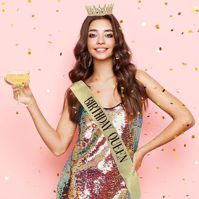 - QUEEN’S BIRTHDAY: This sparkling crown perfectly pairs with the gold-foil "Birthday Queen" sash to create an impeccable birthday party look. Let your elegance and charm shine as you become the center of attention and the queen of the celebration. May your special day be filled with joy and unforgettable memories!