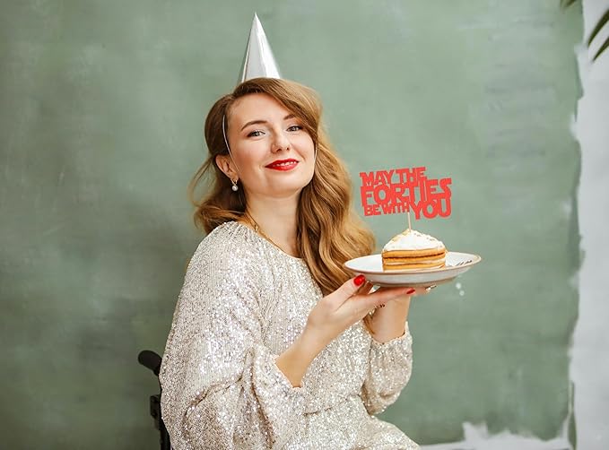 May The Forties Be With You Cake Topper - Glitter Red 40th Birthday Cake Decorations, 40th Wedding Anniversary Cake Pick (Red)