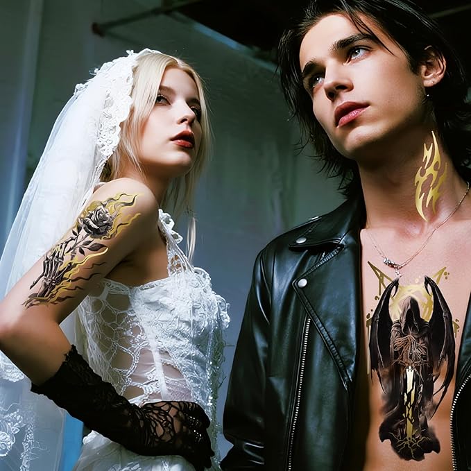 - UNIQUE DESIGN -- including glitter dark gothic punk rocker cat, spider, skeleton, skull, flowers, butterfly , floral , rose and more. Can be attached to various parts of the body, such as arms, shoulders, back, thighs, waist, etc
