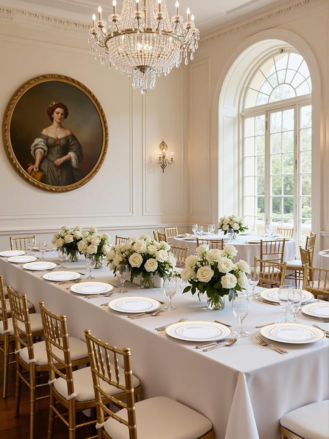 - Elegant and Luxe Vibe: These white and gold plates bring a classy, luxe feel to your special occasions. With the beautiful gold trim design, these thanksgiving plates looks so fancy and elegant.