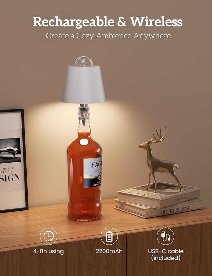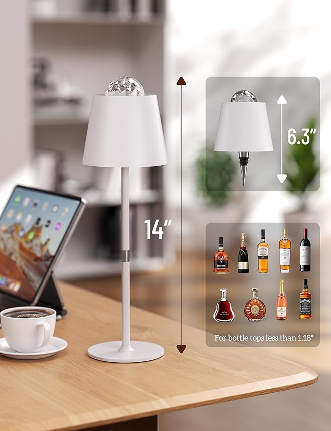 - 【2-in-1 Design – Table Lamp or Bottle Lamp】 Use it your way! This unique lamp can stand on its own with the included metal base or be mounted on a wine bottle for a creative, decorative touch. Perfect for dinner tables, parties, or cozy home décor.