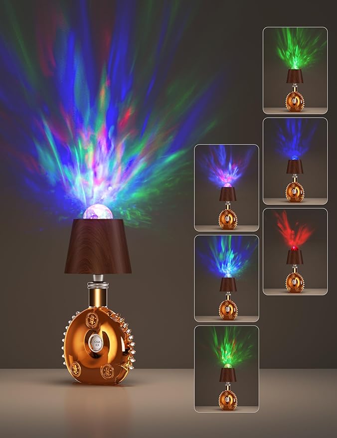 Joyzy Table Lamp Projector Lighting, Wireless Wine Bottle Lamps Rechargeable Lights Water Wave Ripple Projection Liquor Bottle Decoration Light Ambient for Bar