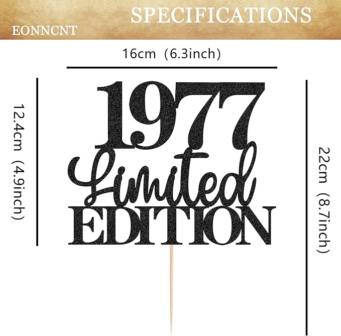 - Shining Party Scene: The unique cursive design of this Limited EDITION 1977 cake smash decor is unique and sparkling, perfectly presenting the beauty of the birthday party venue. This 48th happy birthday cake decoration can be insert on pie, ice cream, and cupcakes, making it the perfect photo background, perfect for 48th anniversary or 48th birthday party